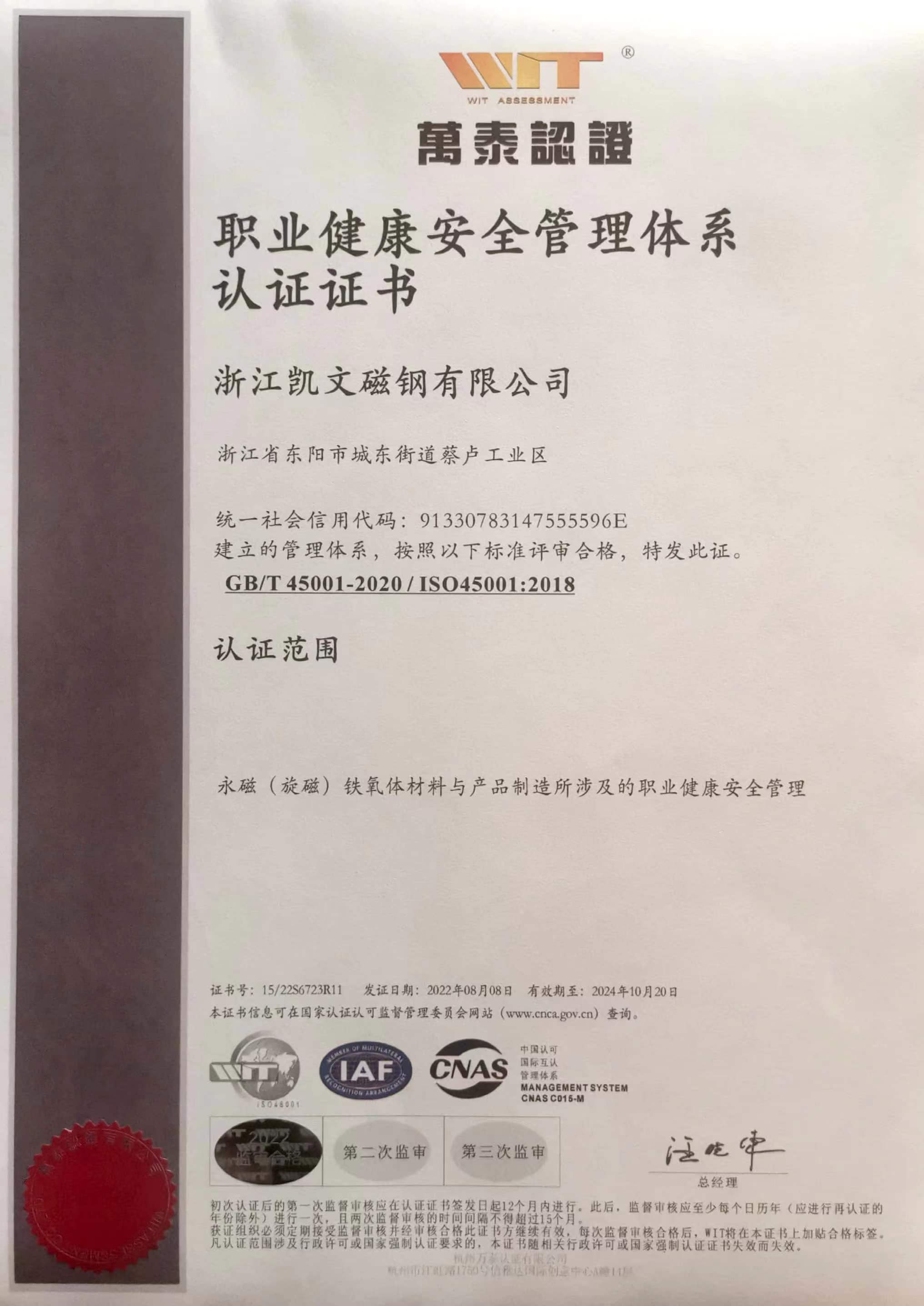 年生產(chǎn)和銷(xiāo)售磁性材料20000噸